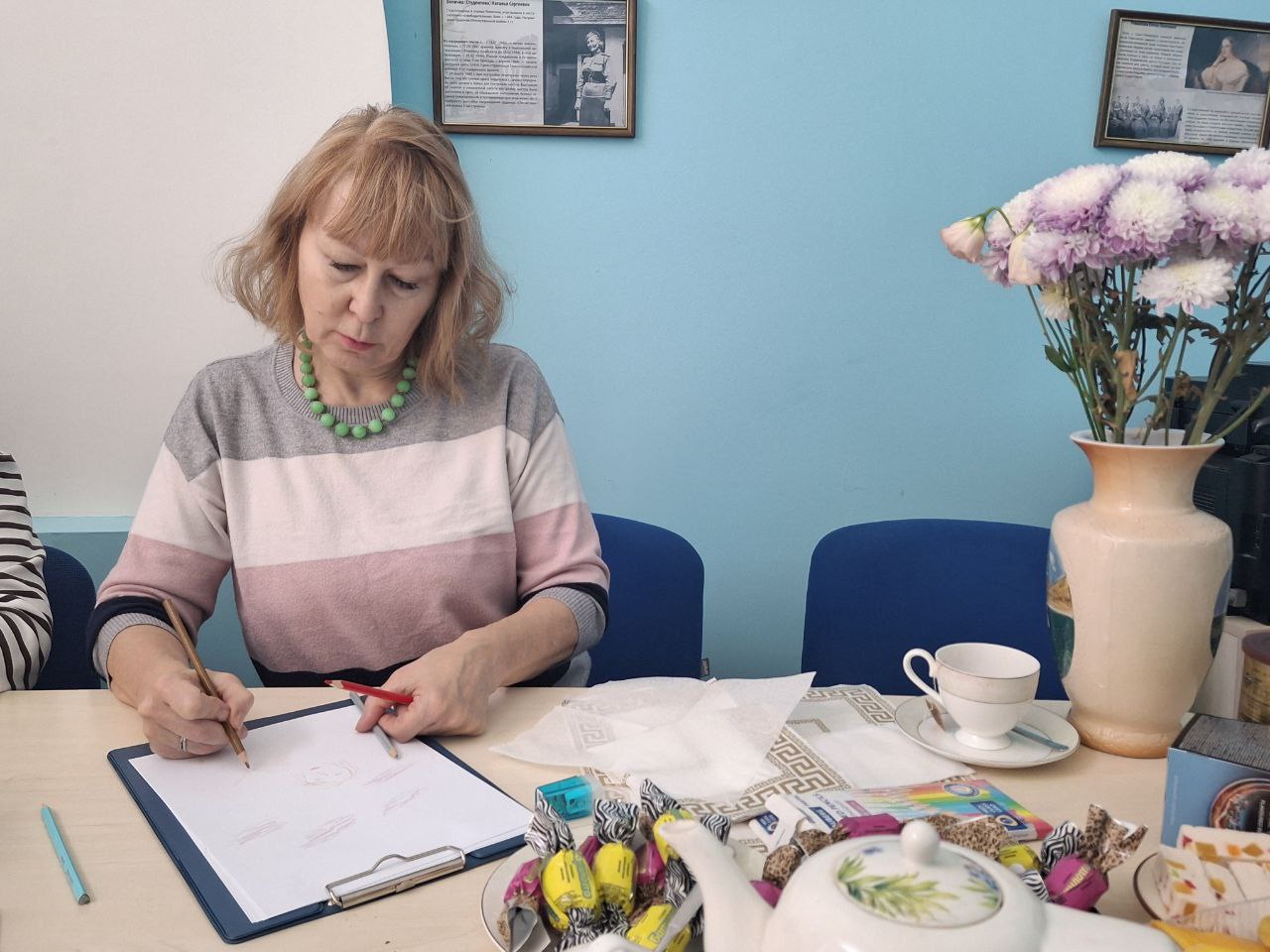 Очень душевно, тепло, можно даже сказать по-семейному прошла вторая встреча Музыкальной терапию для всей семьи сезона 2025/2026 гг из цикла арт-встреч «Волшебная сила музыки». Встречу вела кандидат педагогических наук Арестова Александра Юрьевна. Собрались замечательные гости. В блестящем исполнении Александры Юрьевны звучала прекрасная «живая «музыка русских композиторов Сергея Рахманинова, Альфреда Шнитке, Максима Березовского, Анатолия Лядова под которую рисовали наши замечательные гости. В конце встречи был мастер-класс игры на деревянных ложках от Александры Юрьевны.