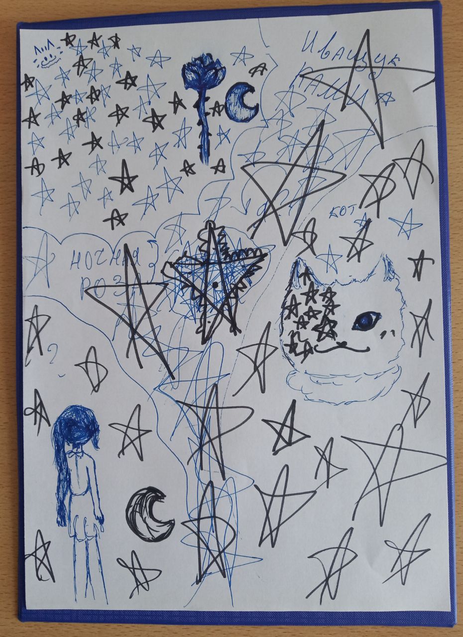Рисунки ребят из Орлиного отличаются экспрессией, яркими красками, быстрым темпом штриха, что характерно для активных детей, не боящихся экспериментов, разносторонних, пробующих себя в разных направлениях. В рисунках присутствует подростковая прямолинейность, желание высказываться.